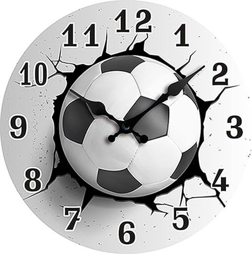 Soccer Ball Wall Clock – 8.5” – 3D Printed Sports Clock | Kids Room Decor